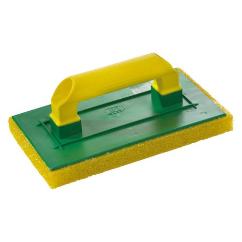 Medidas 290 x 170 mm. Base con esponja de poliester amarillo de poro, esperor 22 mm. Hueco para la mano 3,5 cm. Para limpieza, acabado de juntas y remolinado d e todo tipo de morteros