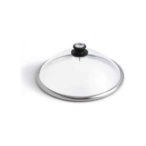 La tapa especialmente desarrollada con vidrio de seguridad convierte la LotusGri ll en una verdadera barbacoa multifunción. El pomo incorpora un termómetro in tegrado para una lectura fácil y precisa de la temperatura interior. La regul ación ideal de la temperatura se controla directamente en la LotusGrill mediante el mando del ventilador regulable. A través del cristal se puede observar có modamente la cocción de los alimentos sin tener que levantarla. Con este acce sorio podremos hornear, asar, cocer a alta o baja temperatura, o simplemente man tener los alimentos calientes. Después de usar se puede lavar en el lavavajillas .