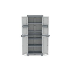Armario ropero monoblock de 2 cuerpos, 4 puertas. Tiene 1 estantes e incluye cer radura, llave y placa. Pintura epoxi poiléster gris. Armarios metálicos que se a daptan a las necesidades de cada usuario, tanto en el espacio que ocupa el conte nedor como en el número de taquillas adicionales. Permite dotar un color especia l a la puerta de la taquilla. Indispensable en cualquier vestuario o cuarto deal macenamiento de utensilios. Es posible incorporarle numerosos accesorios , difer entes cerraduras, sobretechos, estructura de pies, zócalos. Fabricación ancional