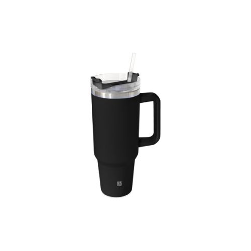 Taza térmica de acero inoxidable de doble pared para llevar bebida caliente o fr ía y con hielo. Con una eficiencia térmica de 5 horas en caliente y 8 horas en f río. La eficiencia puede alargarse hasta 24 horas si se usa hielo. Incluye pajit a para beber. La tapa va a rosca y puede cerrarse el orificio cuando no se usa l a pajita. Tiene una cómoda asa y una forma ergonómica para colocarla en la zona de bebida del coche.