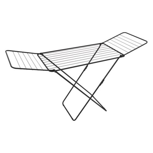 Acero pintado •18 metros de tendido •Medidas 180 x 44 x 96cm • Interior / Exteri or •Apto para bañera El tendedero de pie Capry Black de Cuncial te sorprenderá p or su excelente relación calidad precio. Su elegante diseño y su color oscuro te permitirán usarlo en cualquier lugar. La estructura es de varillas de acero. Gr acias a sus 18 metros de tendido no tendrás problemas para colgar toda tu colada . Se pliega de manera fácil y ocupa poco espacio. Es apto para utilizar en bañer a, también en cualquier otro lugar de la casa o en el exterior. Viene con tacos antideslizantes en el patas incorporado para que no tengas que preocuparte por s u estabilidad."