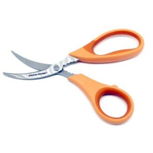 TIJERAS PARA MARISCO, Food&More, - Material: mango: polipropileno, hojas: acero inox., - 180x85mm, - Excelente tijera para pelar la cáscara de gambas, cigalas, etc….fácil y rápidamente, interior de los ojos antideslizante, - Color naranja e inox.