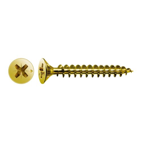 Tornillo madera cabeza plana pozi bicromatado caja profesional 3,5 x 50 (19) 500 uds spax