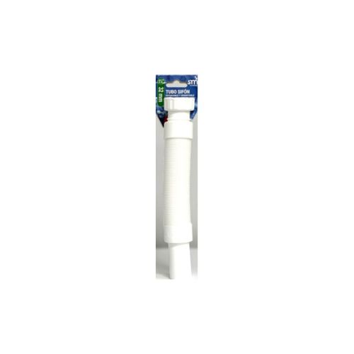 TUBO EXTENSIBLE 35-80 cm ORIENTABLE 1 1/4” Pestaña Sifón de desagüe orientable y extensible (entre 35 y 80 cm de longitud) con conexión hembra de 1 1/4". Long itud: entre 35 y 80 cm (extensible) Tipo de conexión: hembra (1 1/4“) Peso: 40 gr Material: plástico