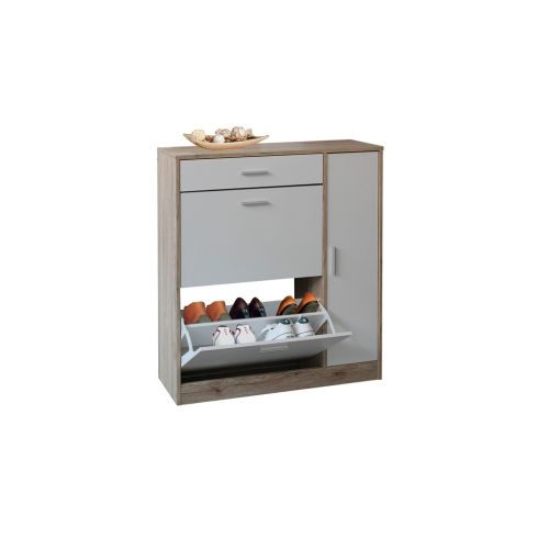 Zapatero 3 puertas y cajón, medidas: 88,5 x 23 x 93CM color blanco/natural